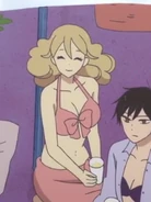 Though one can't tell just by looking at her smiling face, Umi gets jealous when other girls get too close to her famous husband outside of a film shooting. When the female students mobbed Kousuke at school, Umi sent them running by warning that not returning to class at once would result in the chairwoman making them repeat a year.[2] While she does trust him not to be unfaithful, Umi can't help but "joke" that she would kill Kosuke if he kissed other women outside of work.[3]